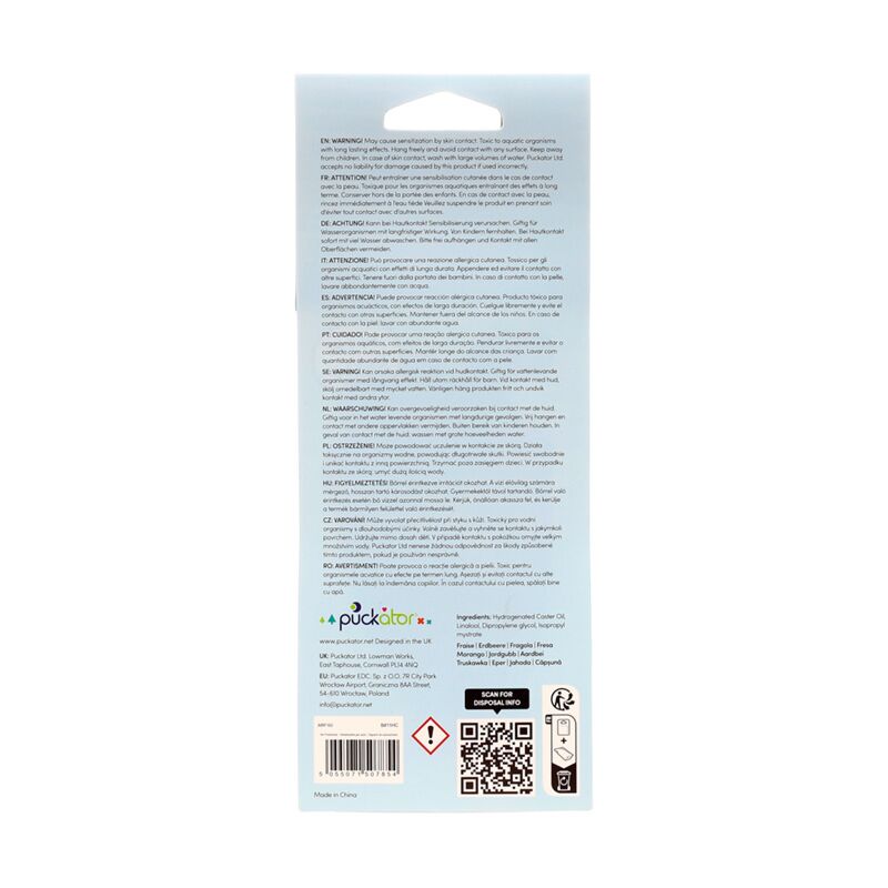 - Material: Card, Polypropylene, Elastic, Absorbant Paper, and Fragrance