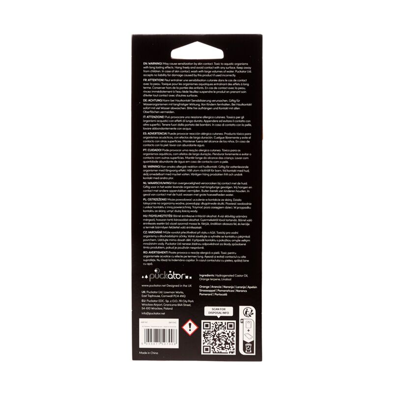 - Safety Information: Keep away from children. Full safety and fragrance information is shown on the product packaging. Do not rest or lean against any surface as the oils in the air freshener can cause staining or damage.