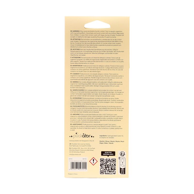 - Material: Card, Polypropylene, Elastic, Absorbant Paper, and Fragrance