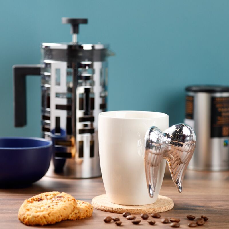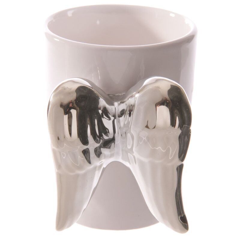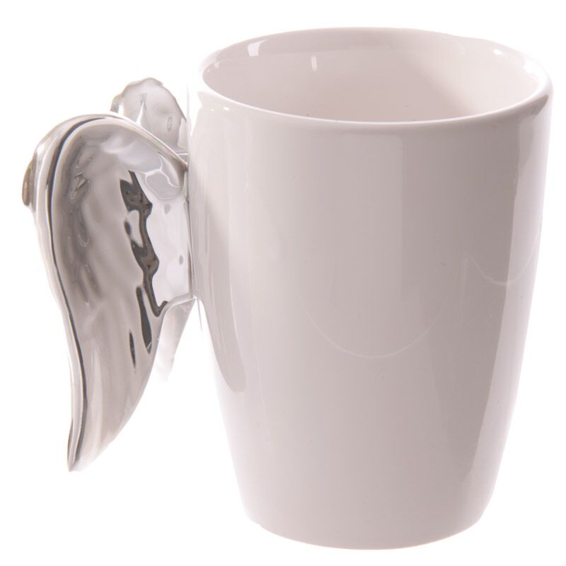 Shaped Handle Ceramic Mug - Silver Angel Wings