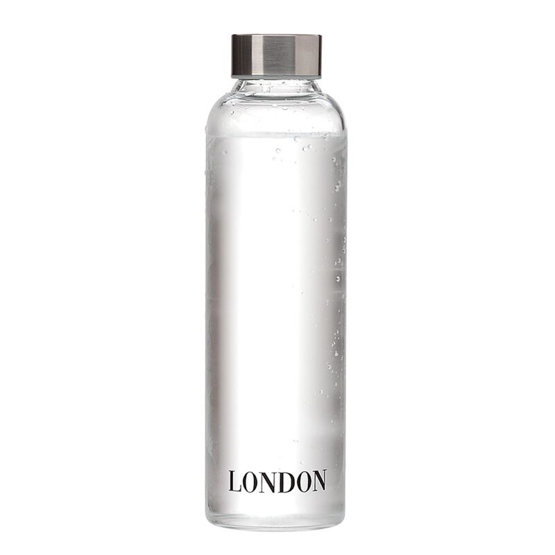 Reusable 500ml Glass Water Bottle with Protective Neoprene Sleeve - London Icons