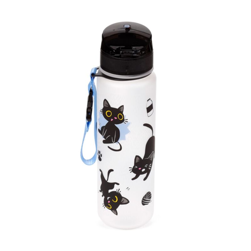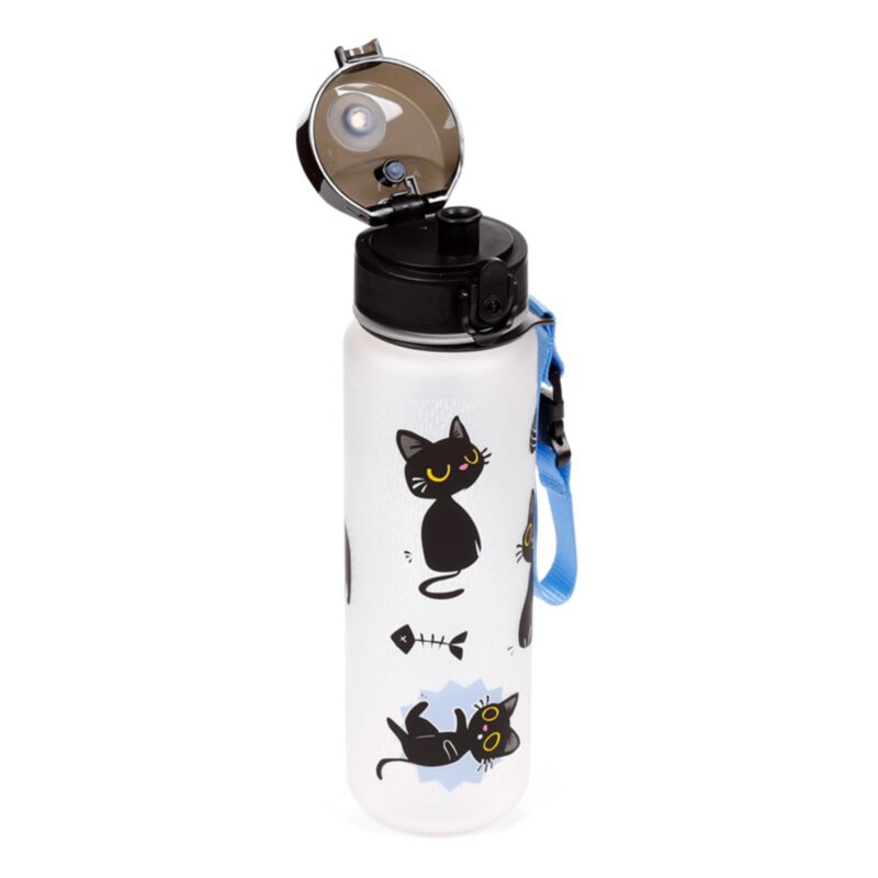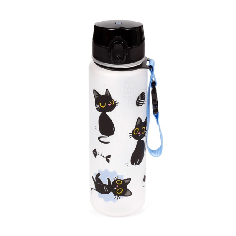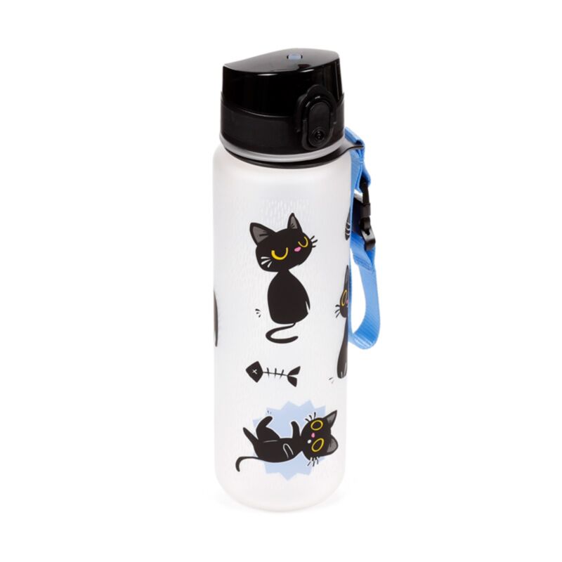 600ml Shatterproof Pop Top Water Bottle - Lucky the Black Cat