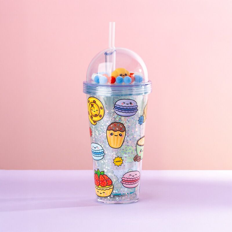 Double Walled Cup with Lid, Straw & Charms - Foodiemals Boulangerie
