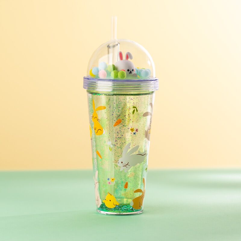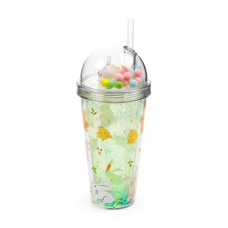 Double Walled Cup with Lid, Straw & Charms - Springtime