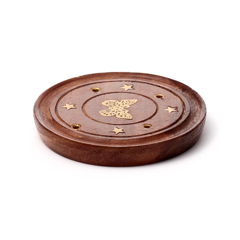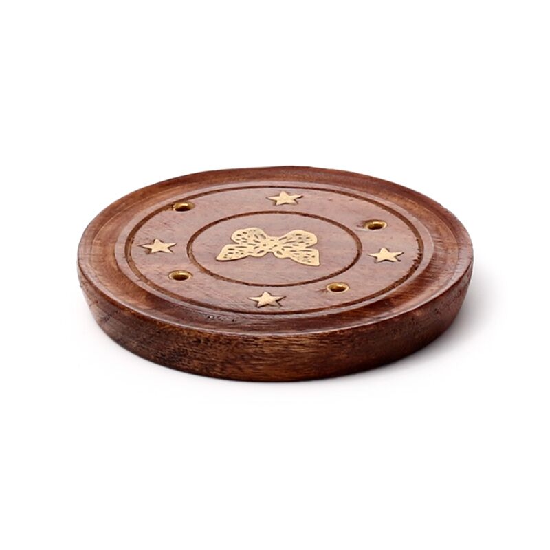 Decorative Sheesham Wood Round Butterflies Ashcatcher