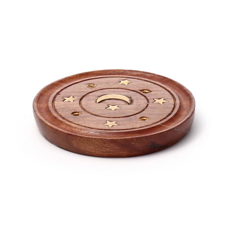 Decorative Sheesham Wood Round Ashcatcher Moon and Stars