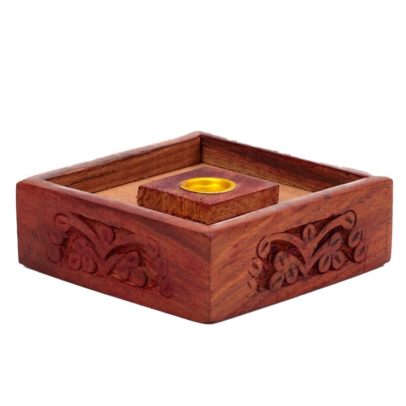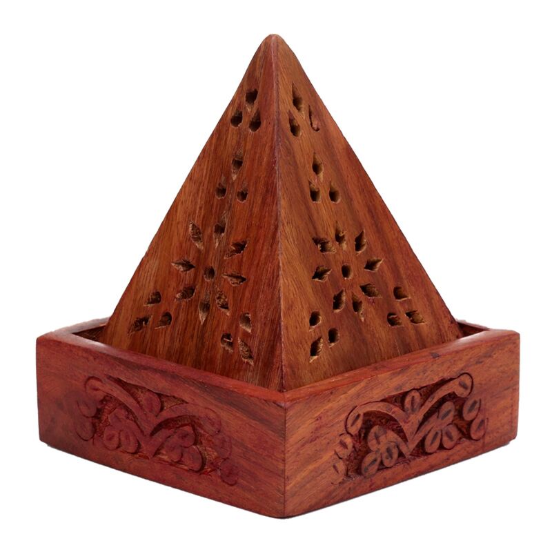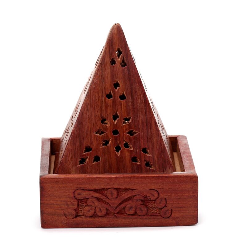 Pyramid Sheesham Wood Incense Cone Box with Fretwork