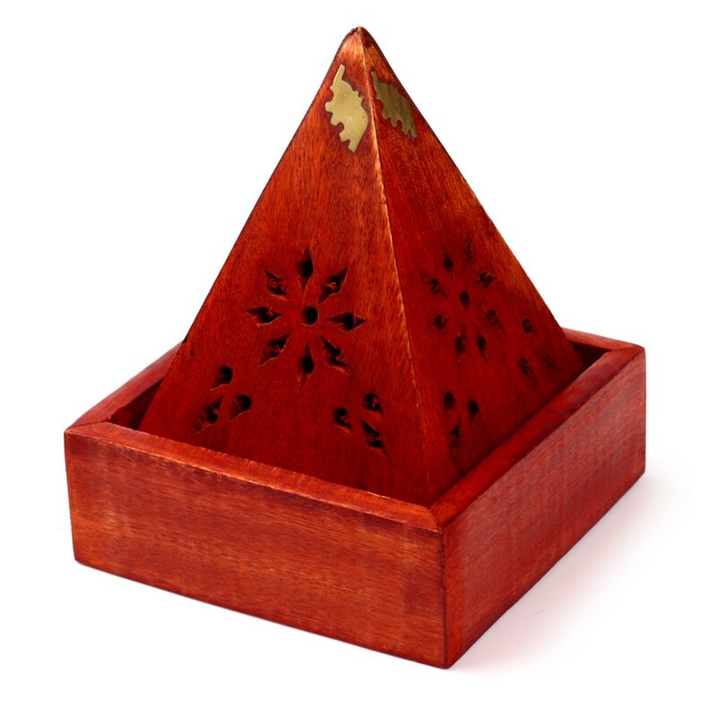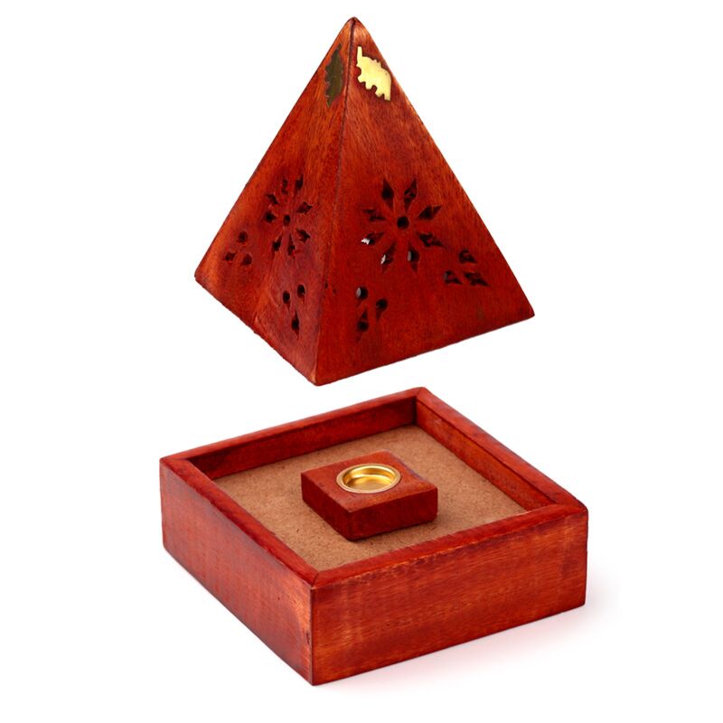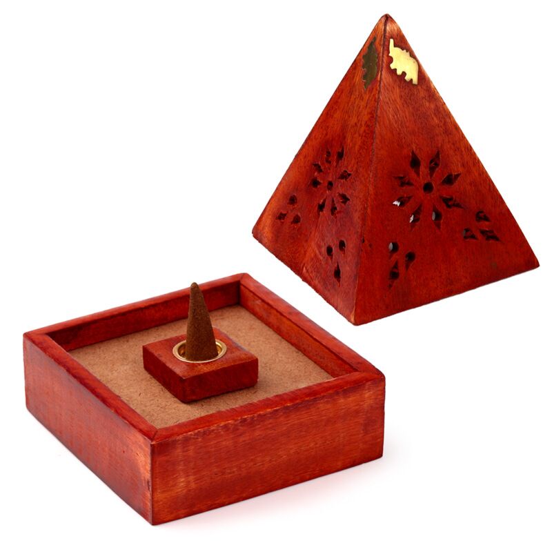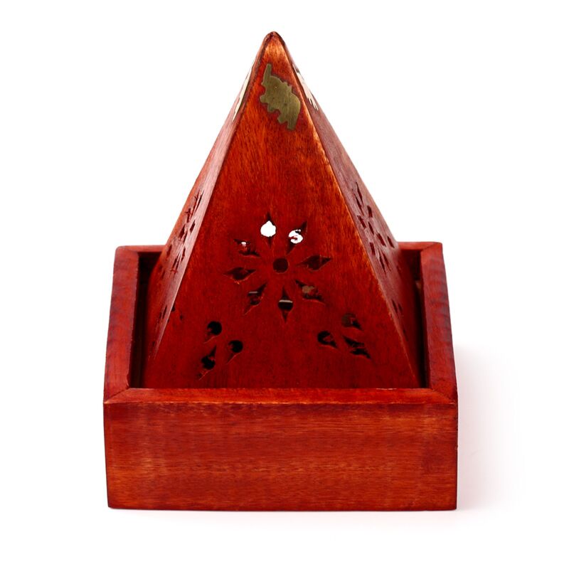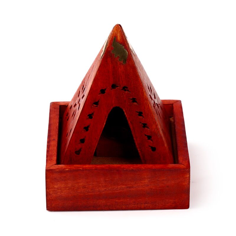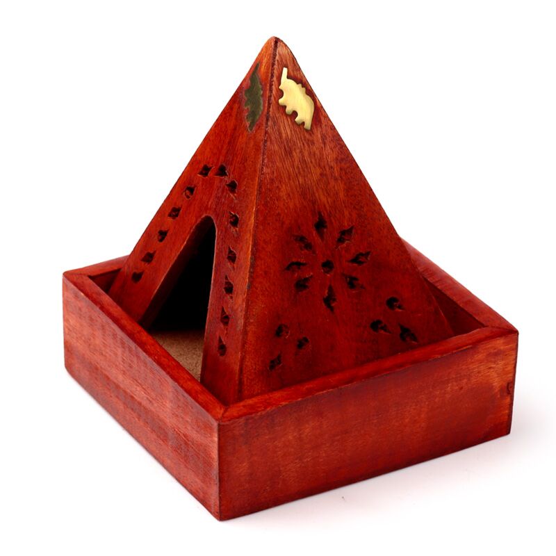Mango Wood Pyramid Incense Cone Burner Box with Elephant