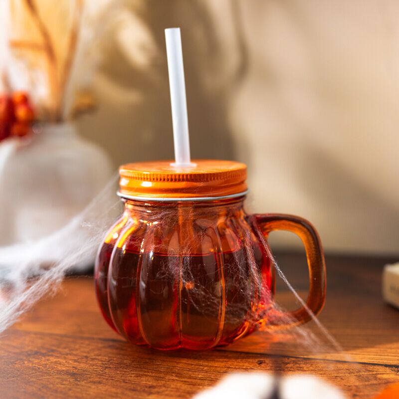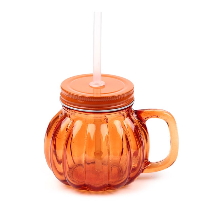 Glass Drinking Jar with Lid & Straw - Pumpkin