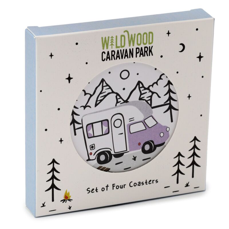Set of 4 Cork Novelty Coasters - Wildwood Caravan