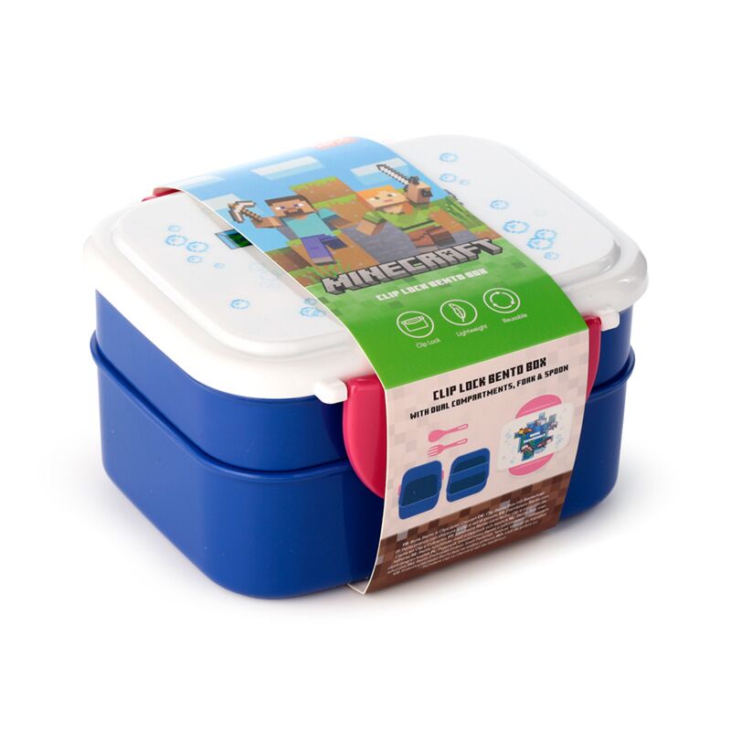Bento Clip Lock Lunch Box with Cutlery - Minecraft Axolotl