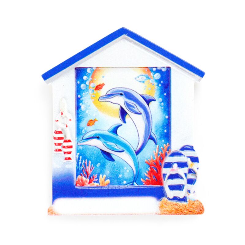 Souvenir Magnet - Beach Hut Shaped Beach Bar & Dolphins