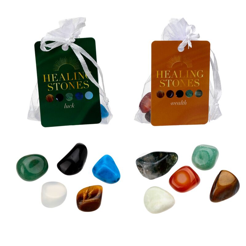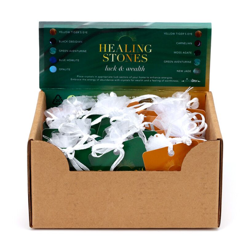 - Stones: Luck (Yellow Tigers Eye, Black Obsidian, Green Aventurine, Blue Howlite, Opalite) - Wealth (Yellow Tigers Eye, Carnelian, Moss Agate, Green Aventurine, New Jade)