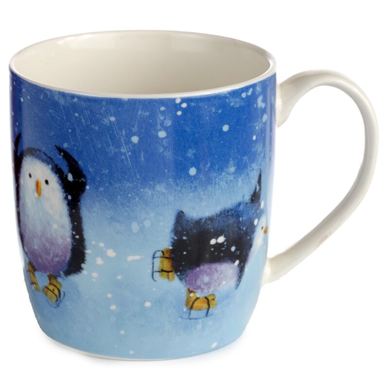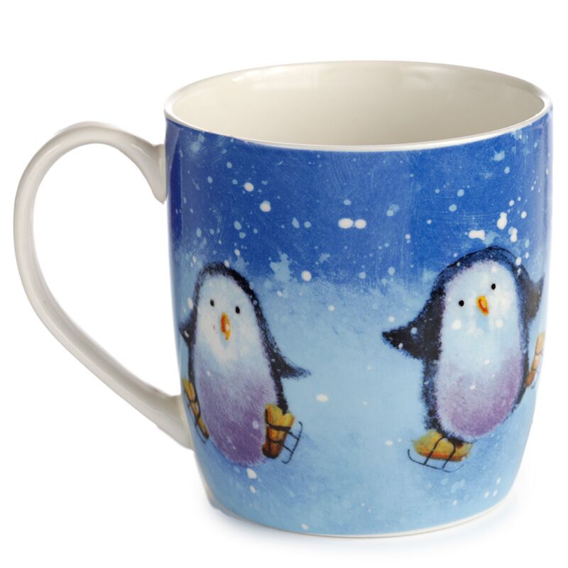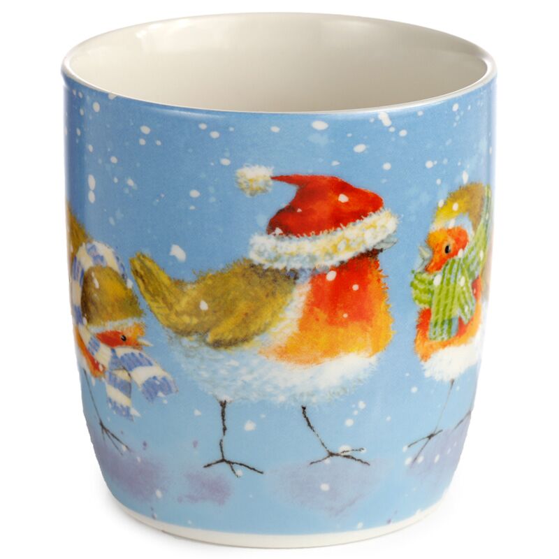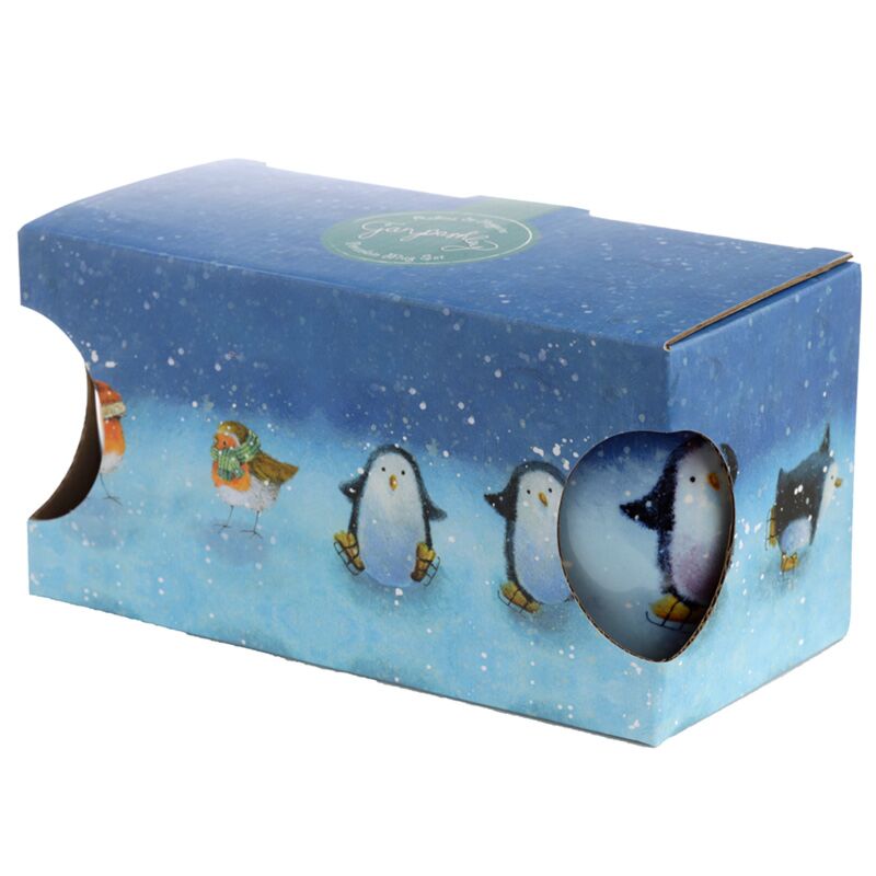 Set of 2 Porcelain Christmas Mugs - Jan Pashley Robin & Skating Penguin