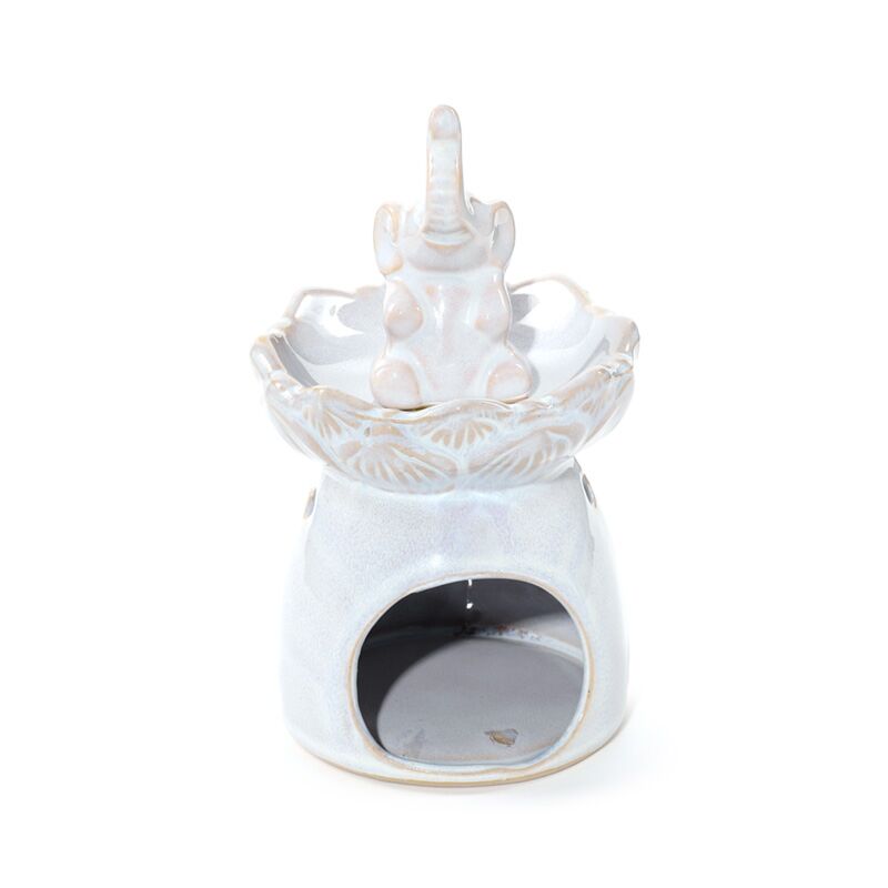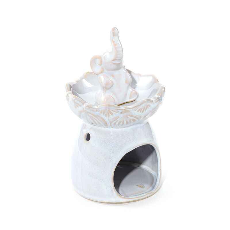 Porcelain Oil Burner - Eden Elephant Lotus Flower