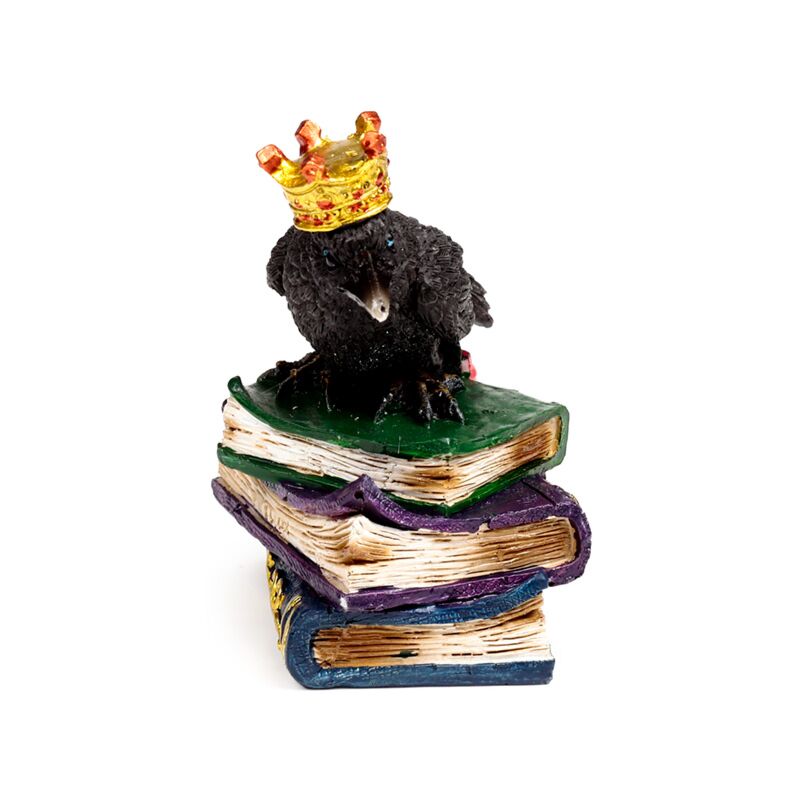 Decorative Ornament - Crow Wearing Crown Standing on Books