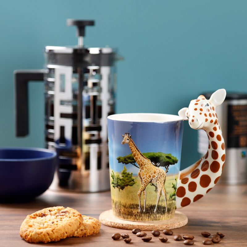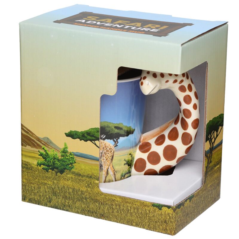 Shaped Handle Ceramic Mug - Giraffe Savannah Decal