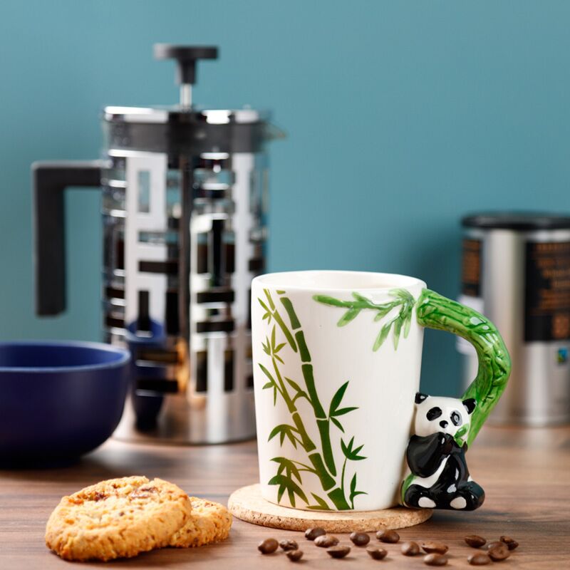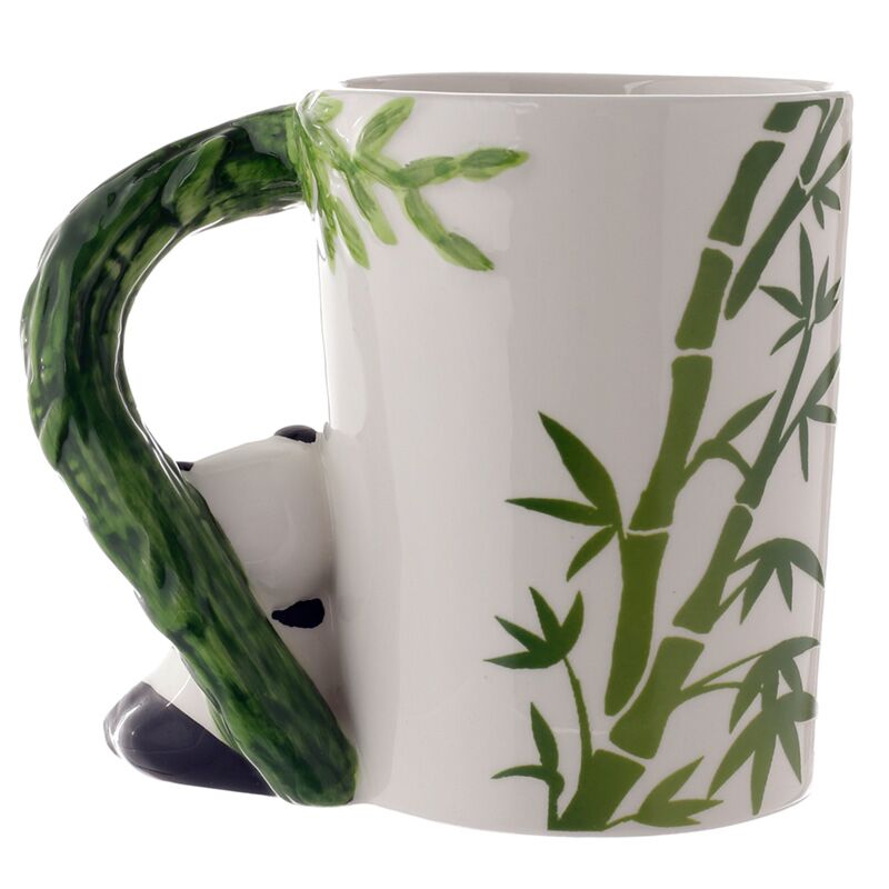 Shaped Handle Ceramic Mug - Panda with Bamboo Decal