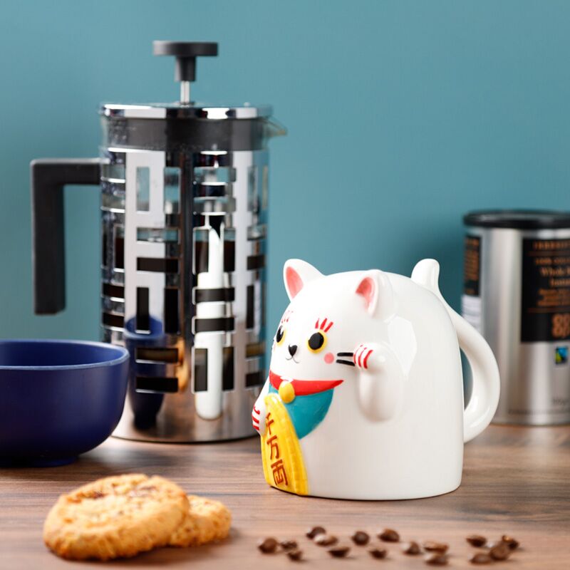 Novelty Upside Down Ceramic Mug - Maneki Neko Lucky Cat