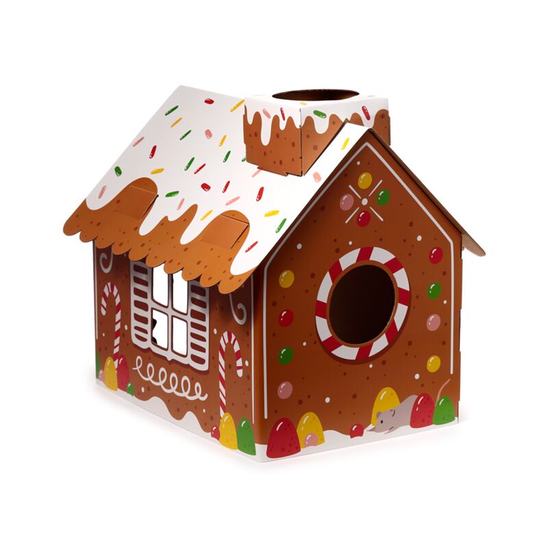Cardboard Cat Den Playhouse - Christmas Gingerbread House