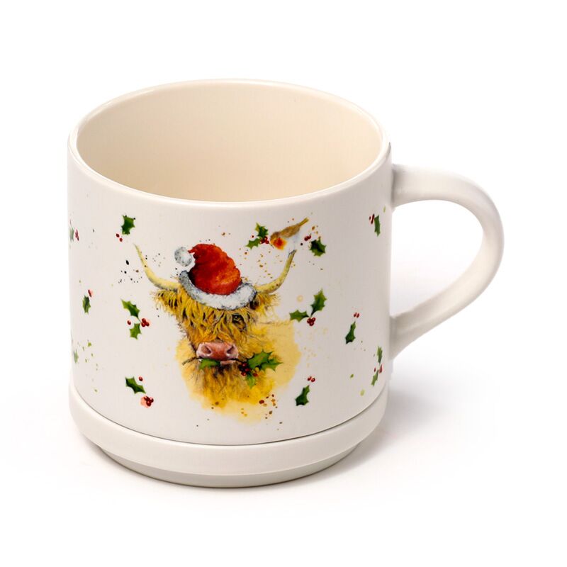 Porcelain Mug & Coaster Lid Set - Christmas Jan Pashley Highland Coo Cow